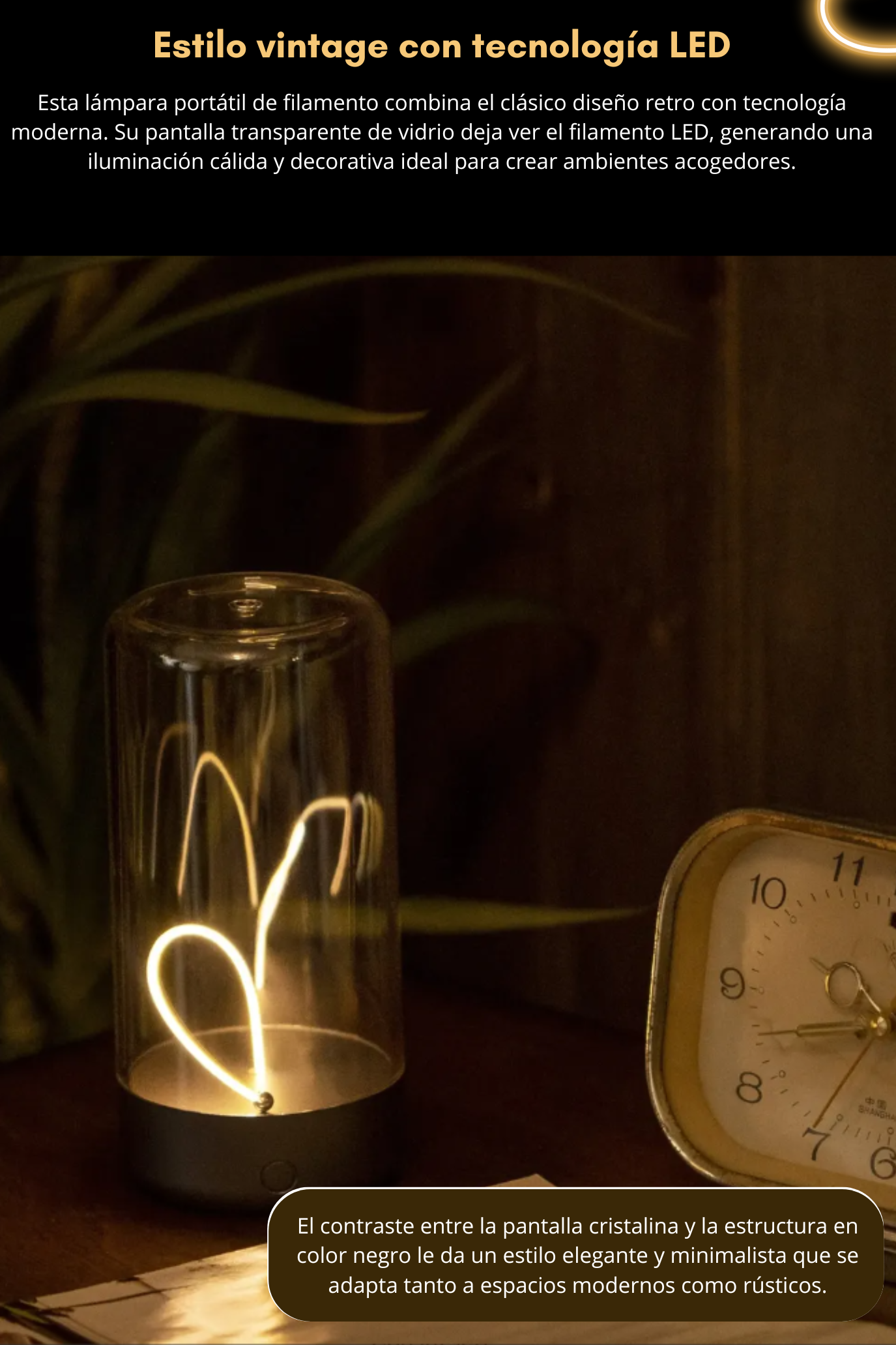 Cuenta con luz LED de filamento, ideal para generar un ambiente cálido y decorativo.