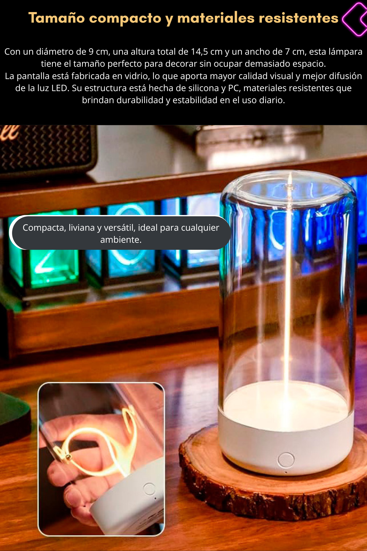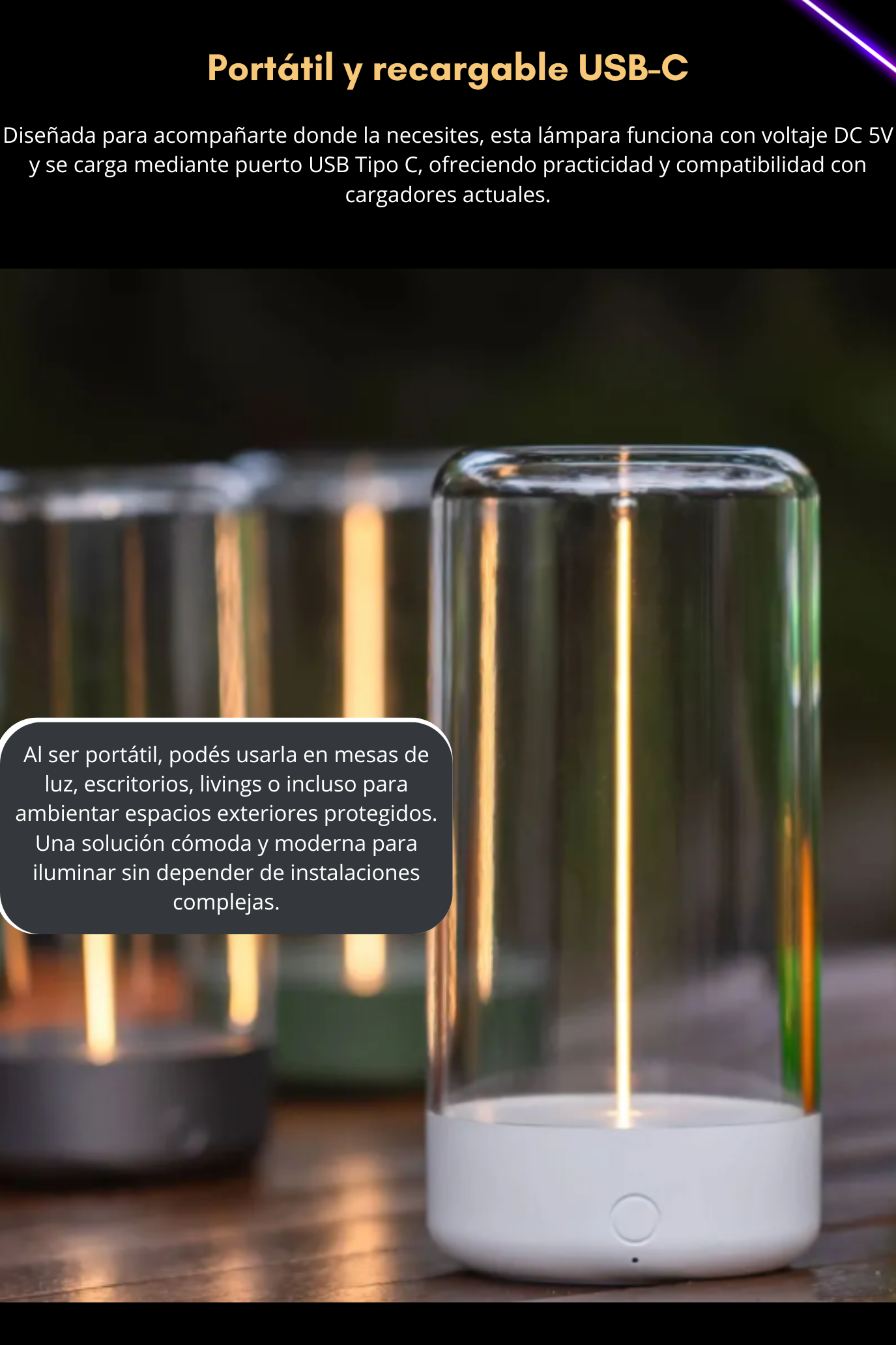 La lámpara ofrece hasta 12 horas de autonomía con una carga completa, ideal para usarla durante toda la noche o en reuniones sin preocuparte por enchufes.